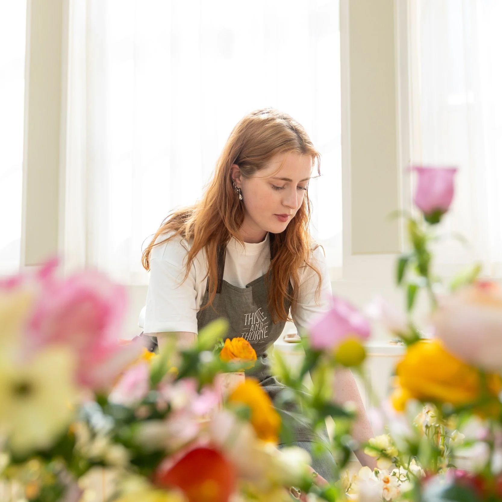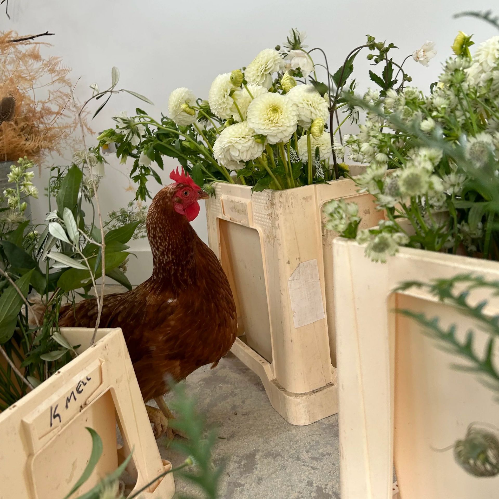 Gertie, our beloved chicken, is more than just a feathered friend, she's our official Quality Control Inspector. With her keen eye for detail, Gertie ensures every petal is perfectly placed and every bouquet is up to her high standards.
